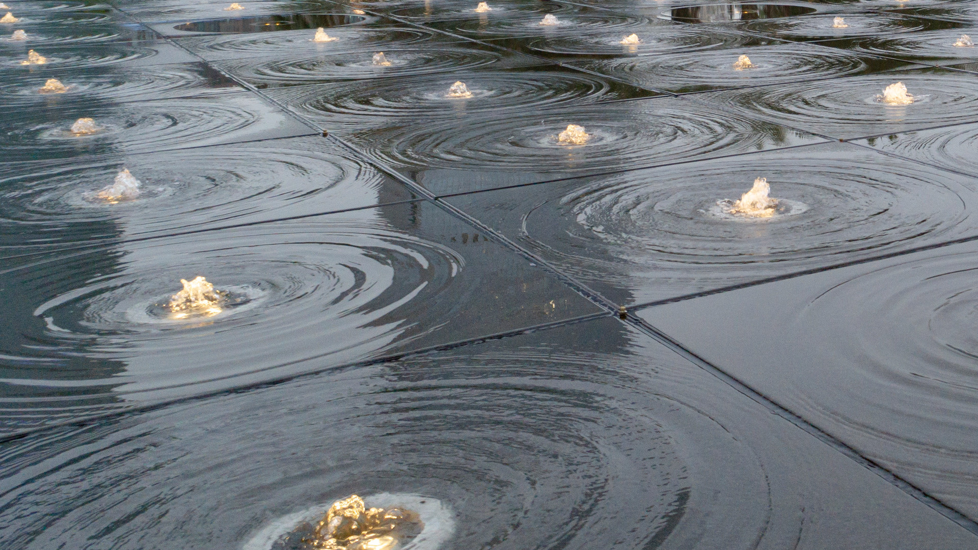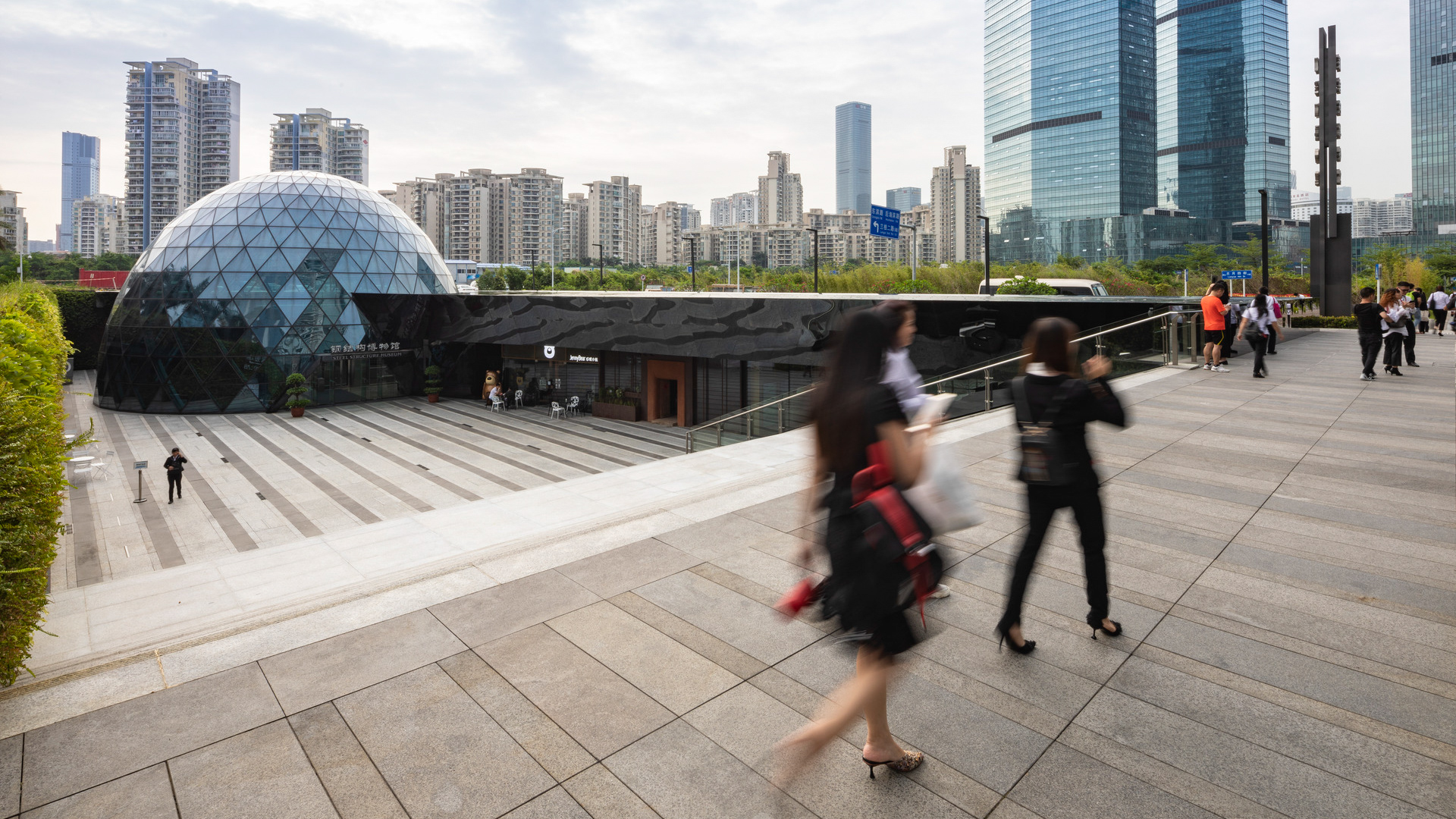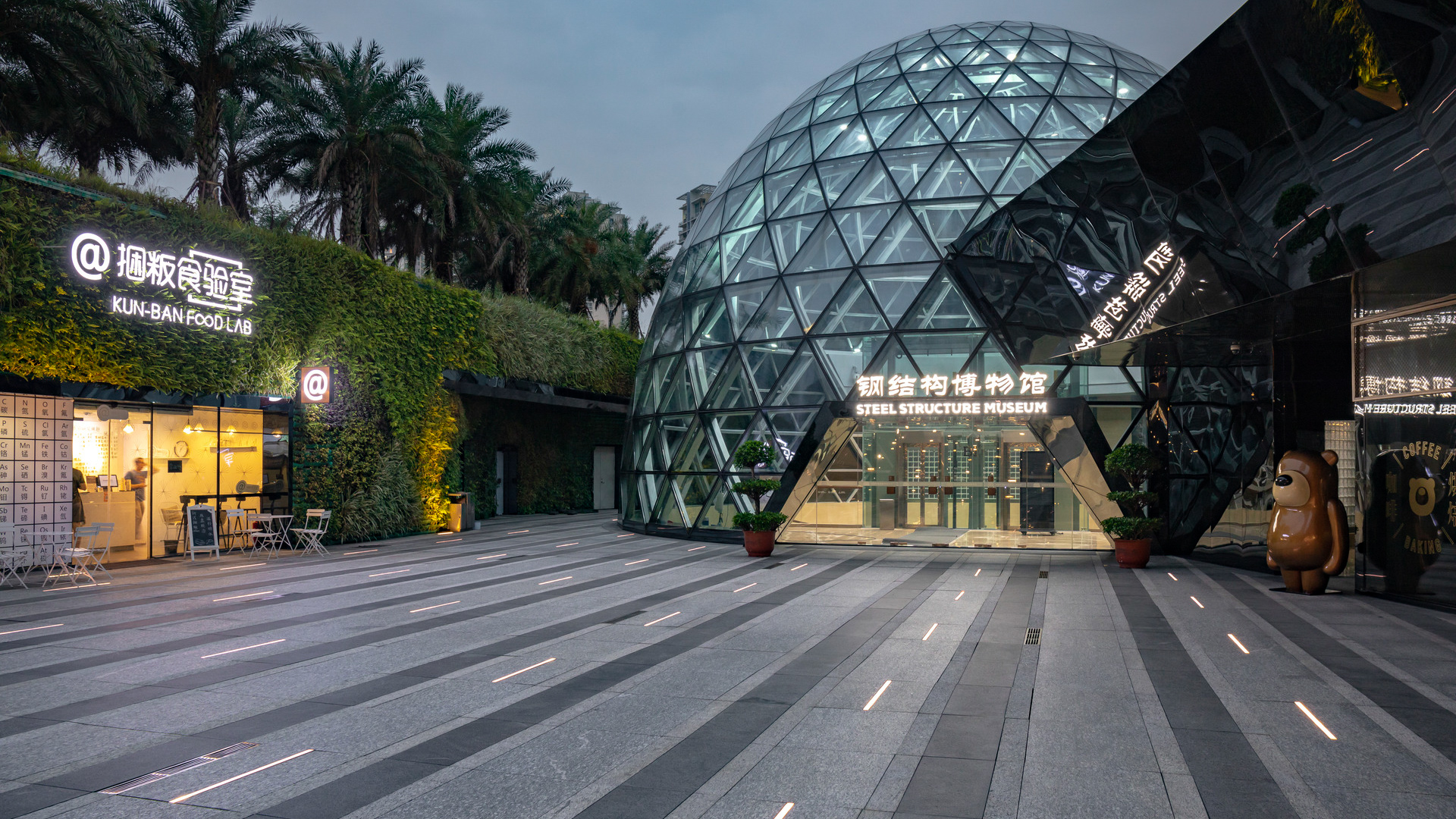 CSCEC Steel is a division of the world’s largest construction company, China State Construction Engineering Corporation Limited. CSCEC Steel is recognized as a leading global steel structure manufacturer; their projects include the CCTV Headquarters in Beijing, the Shanghai IFC, the new Abu Dhabi International Airport, and the 26th Universiade Main Stadium. To celebrate the company’s anniversary, CSCEC Steel built a new corporate headquarters tower and a museum, located in the core of Shenzhen’s Nanshan District. The project’s main design challenge was a reflection fountain structure, a key landscape element that had been designed and constructed prior to SWA s involvement. The 17,000-square-foot fountain covers 50 percent of the site and sits atop of the museum shops. A sunken courtyard serves as the museum’s entry, retail frontage, and a passage to the City Subway station. A green wall softens the structures on site, while also carrying the foliage of the urban park into the sunken plaza. SWA provided three fountain floor design alternatives; a stainless steel motif, inspired by the client’s logo, was the selected scheme.